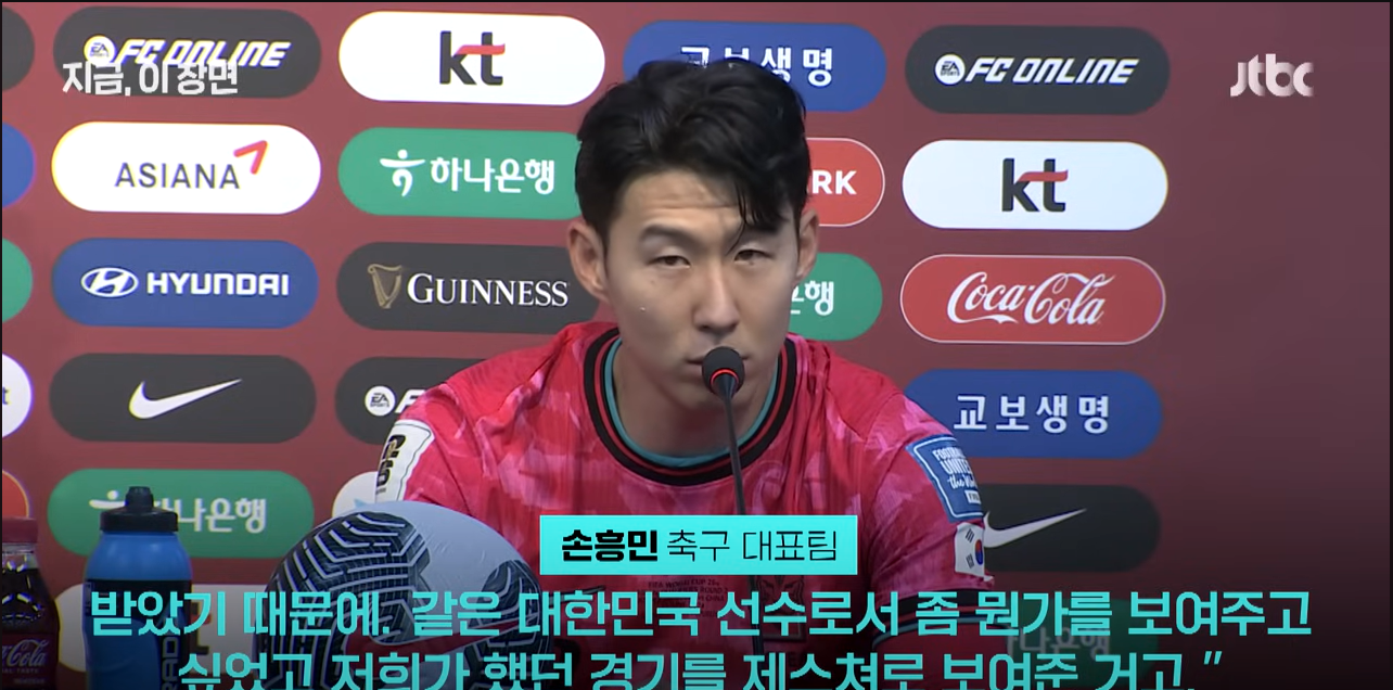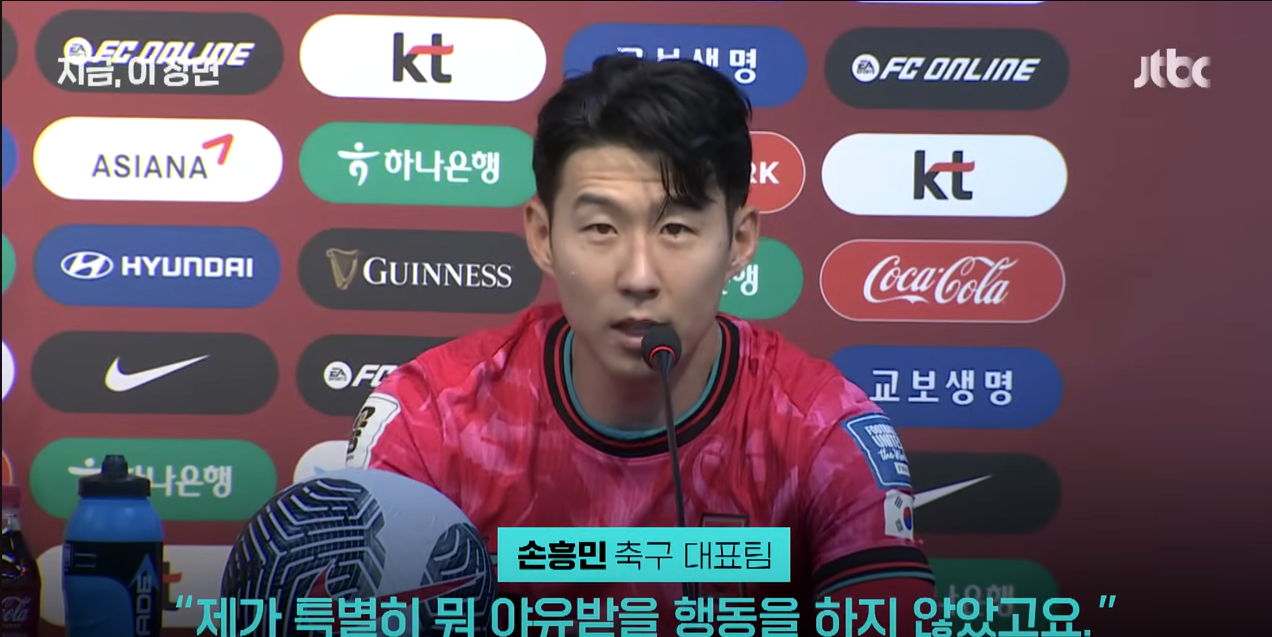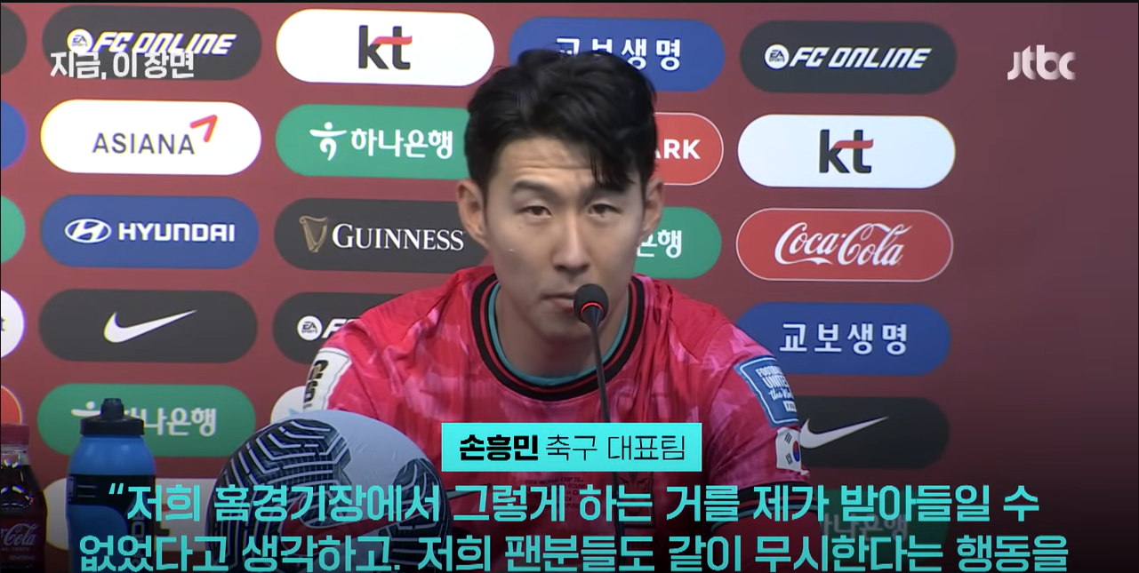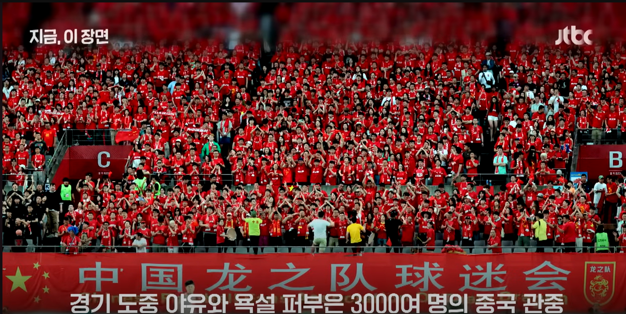 손흥민 선수의 인터뷰에서는 경기 중 손흥민 선수의 제스처에 대한 질문과 답변이 있었는데요. 경기 중 약 3천명 가량의 중국 응원단의 야유 문제가 원인이 되었습니다.