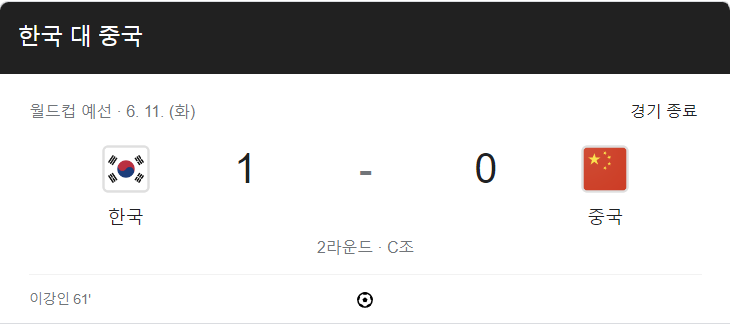 2026년 북중미 월드컵 2차 예선 한국 대 중국 경기 결과